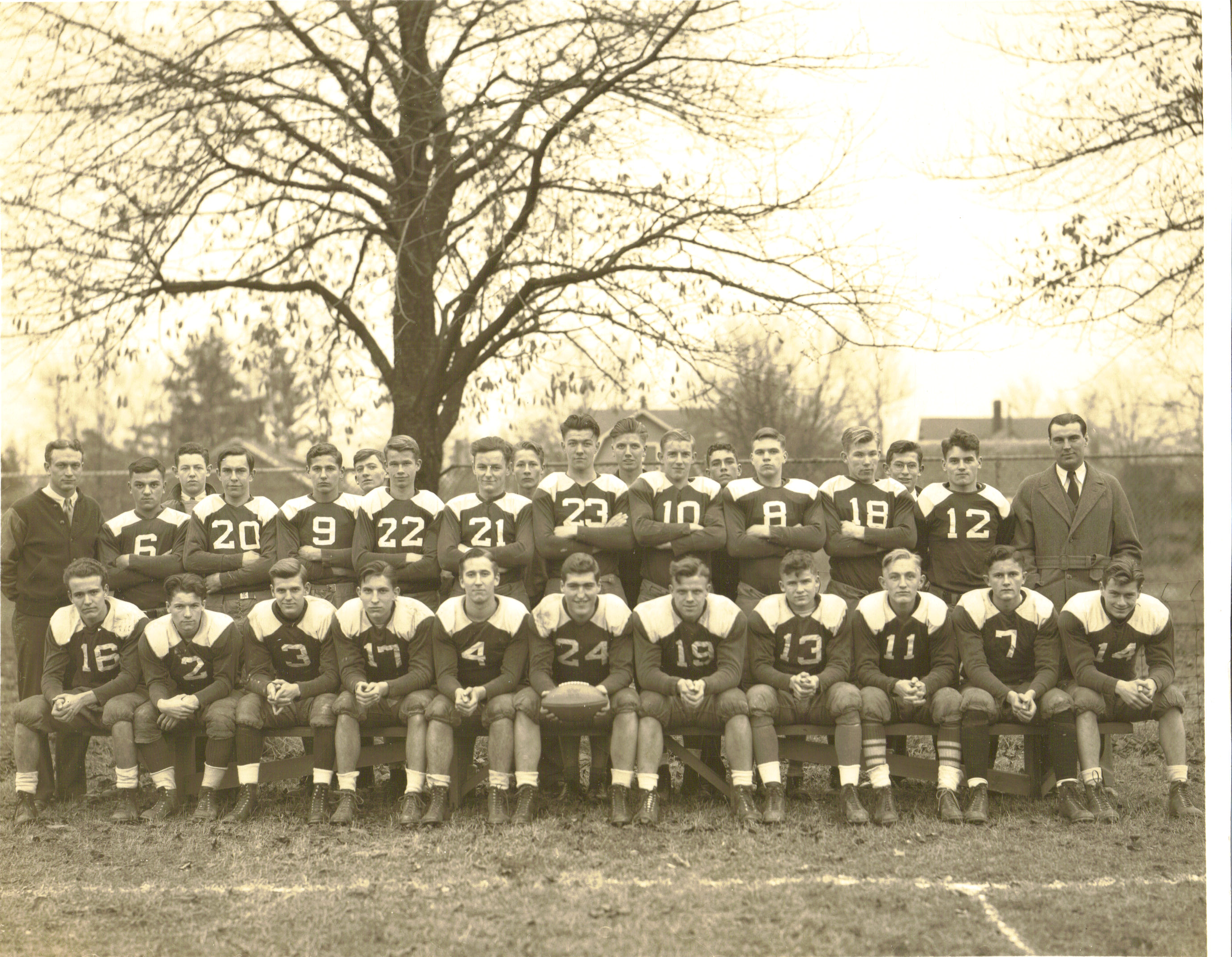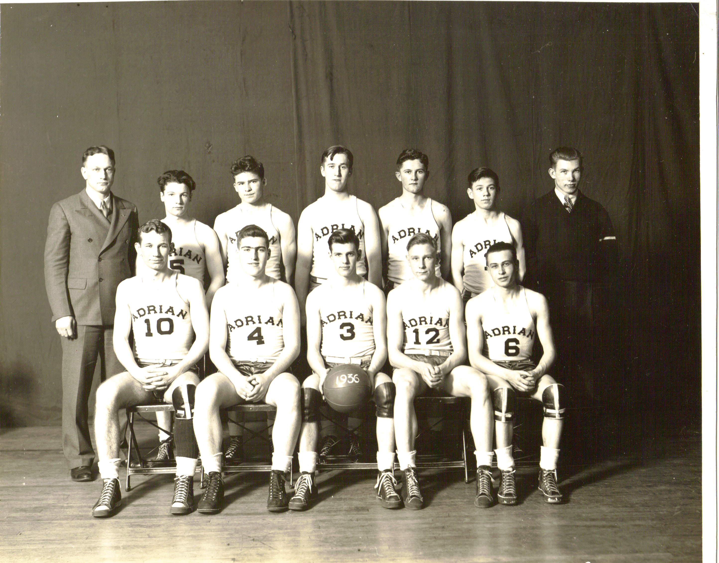 My years at Adrian High School were full of wonderful experiences. My yearbook sort of tells the story of my interests in music, sports, and YMCA activities. Although I studied hard, athletics became my life. By the time I was in the ninth grade, I was playing football, basketball, baseball and tennis on the high school teams. It was football in the fall, basketball in the winter, and tennis, along with some baseball, in the spring. During my high school years I experienced many injuries playing sports, such as a broken nose, many sprained ankles, a tennis elbow, and the normal bumps and bruises that go along with contact sports.